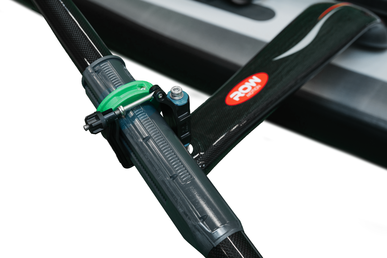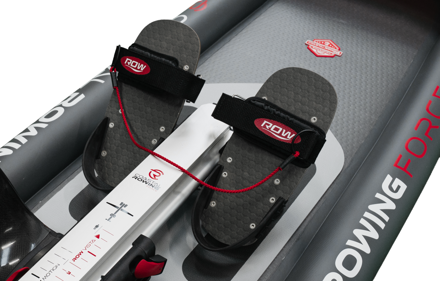 Simply hook into the preassembled D-rings and buckle the Rowing Skid.