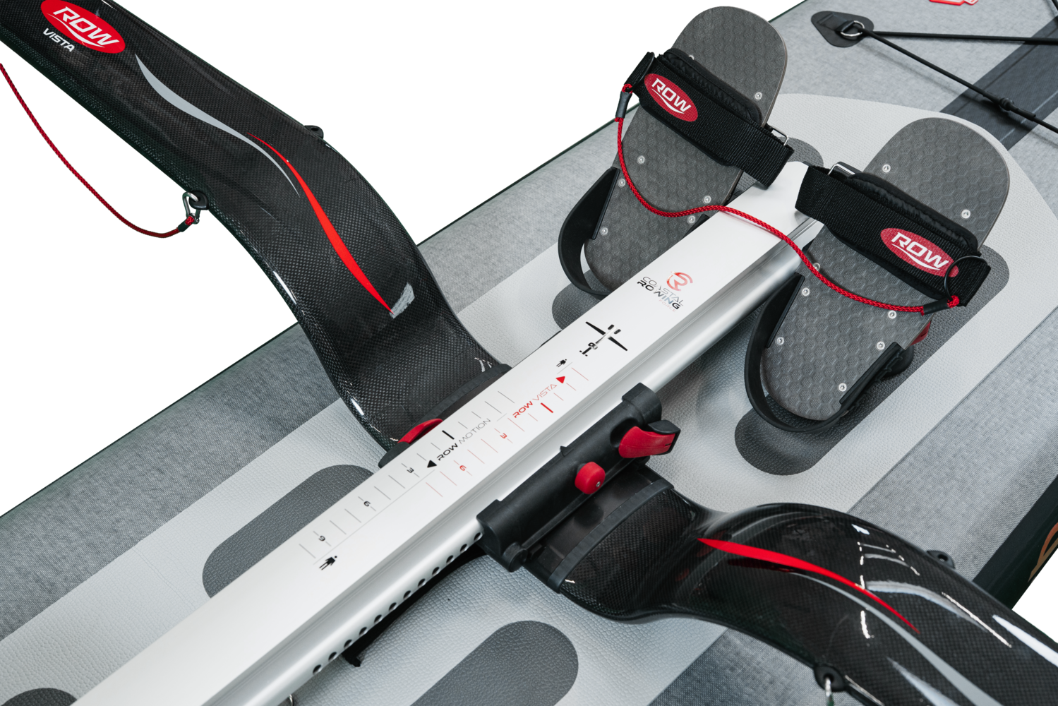 Attach and secure the Rowing Skid quickly and easily to the DUDE 18, MOJO 18, AIRSKIFF 17, AIRKAYAK 16, LITE 15 or your own Stand Up Paddle board, canoe, kayak, canadian canoe and convert it into a high-performance sculling boat with sliding seat.